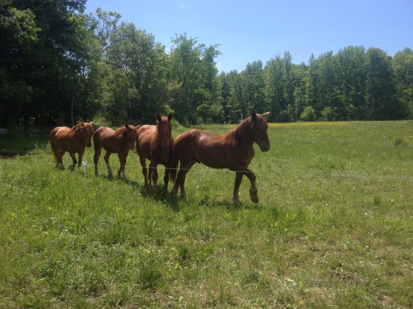 Meanwhile, in the Nursery, we have 3 fillies hanging out with our 14 month-old stud colt, Donn. He’ll start trying to breed the older fillies in 2015.