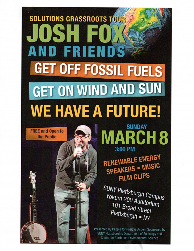 Josh is a hero to many of us, if only for the fact that he is able to provide us with an example of a catalyst of change in the face of seemingly greater and greater forces coalescing to operate against positive change and to continue to institutionalize business as usual. Josh defies this. And, in seeing his work and his passion for a better world, one can’t help but to be changed as well. Our community is so fortunate to have the opportunity to host the Solutions Grassroots tour.” ~Lauren Eastwood, Department of Sociology, SUNY College at Plattsburgh
